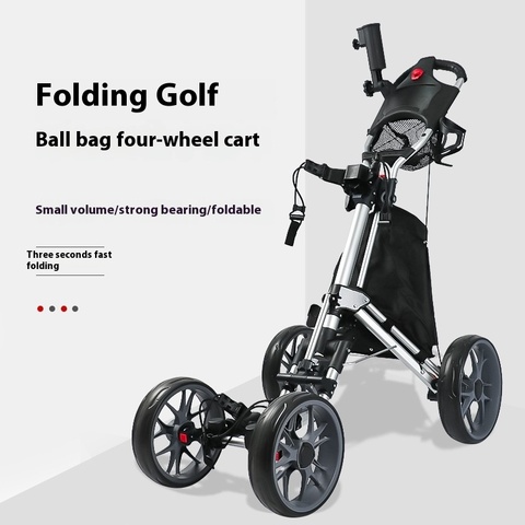 Carrello da Golf portatile a quattro ruote argento/nero con telaio in alluminio pieghevole comodo per il trasporto di sacche da Golf
